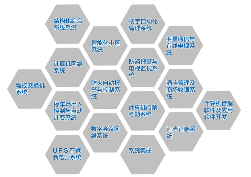 我公司主要业务领域集中在智能楼宇、信息技术服务两大板块的系统集成。在政府机关、教育科研和能源建筑、商业办公、智能交通、智慧城市、高档住宅小区等领域具有突出优势。