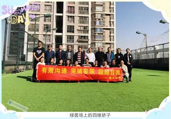 本次拓展训练中,从开始的组队、建队旗、起队歌,到后来的集体项目活动,一连串下来,感觉充实有趣。在训练场上,集思广益,诞生了两支最勇猛的队伍——“蛟龙队”和“π队”,大家忘记年龄,忘记工作的身份,忘记生活的环境,南大四维family的每一位成员,都全身心的投入到训练中。整个训练主要包括五大项目:团队破冰、挑战60秒、我们去战斗、挑战五分钟、穿越火线。每每遇到困难和挑战,队员们相互支持和激励,没有责备,没有抱怨,没有放弃,没有抛弃。最终,顺利地通过了重重考验。