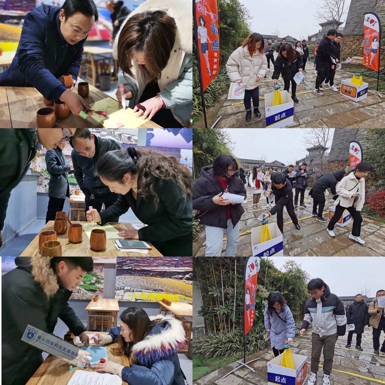 比赛在13:30分准时开始,各组队员分批出发,有的组朝就近方向的游戏点跑去,有的组按照刚刚商量好的路线进行比赛,放眼望去,整个景区都是各组队员向目的地奔跑的身影。在关卡挑战环节中,每组队员都聚精会神、争分夺秒的完成任务,每通过一关,队员们都兴奋不已,但是时间不允许他们在原地互相欢呼,又立刻朝下一个关卡跑去。