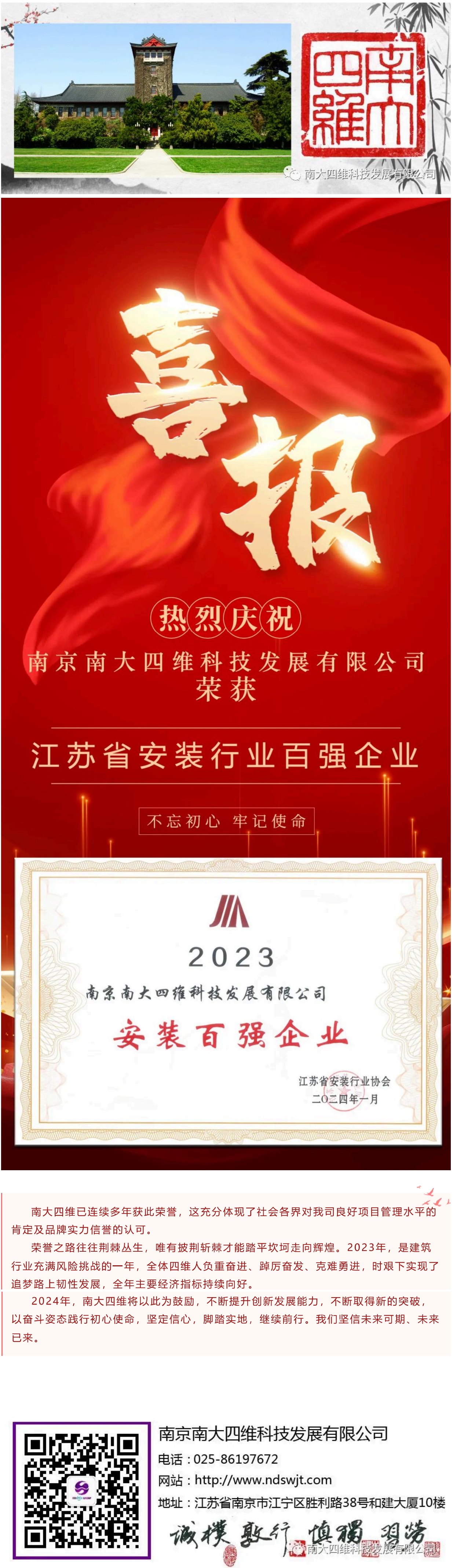 喜报|我司荣获“2023年度江苏省安装行业百强企业”